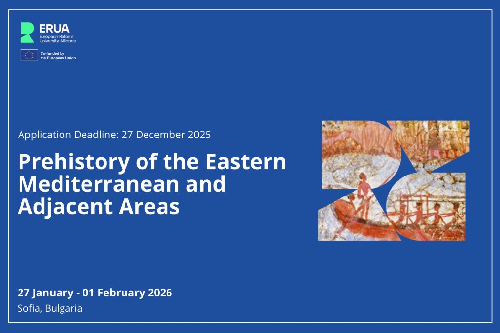 ERUA and New Bulgarian University (NBU) are announcing an intensive course “Prehistory of the Eastern Mediterranean and Adjacent Areas” that will take place at NBU and online, between the 27 of January and the 1st of February 2026. The iintensive hybrid course will consist of