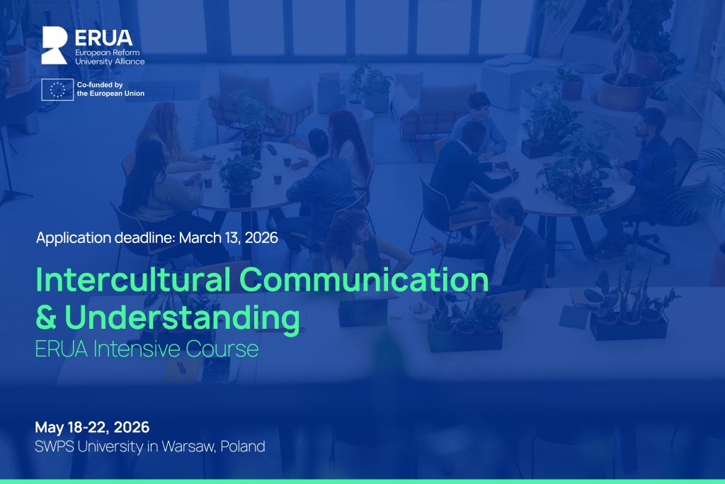 SWPS University and ERUA invite Master’s and Bachelor’s level student to participate in an Intensive Course “Intercultural Communication & Understanding: Culture, Identity, and Language in a Globalized Context”, which will take place in Warsaw, Poland, May 18-22, 2026.