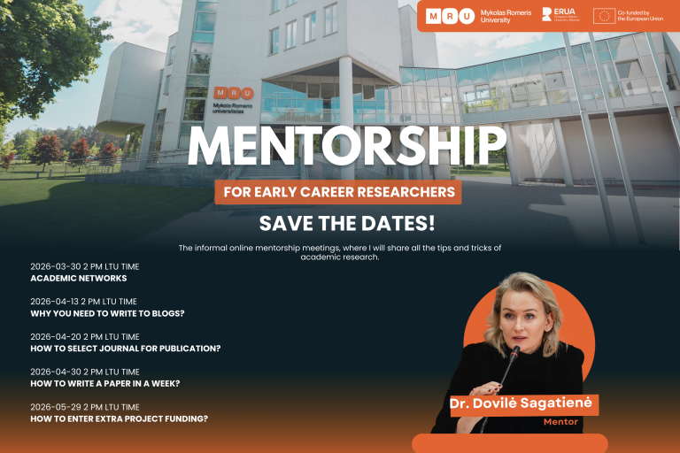 Assoc. Prof. Dr. Dovilė Sagatienė, Advisor to the Vice-Rector for Research and Innovation on Early-Career Researchers’ Development at Mykolas Romeris University, invites doctoral students and postdoctoral researchers from MRU and partner institutions to participate in a new season of informal mentorship sessions.